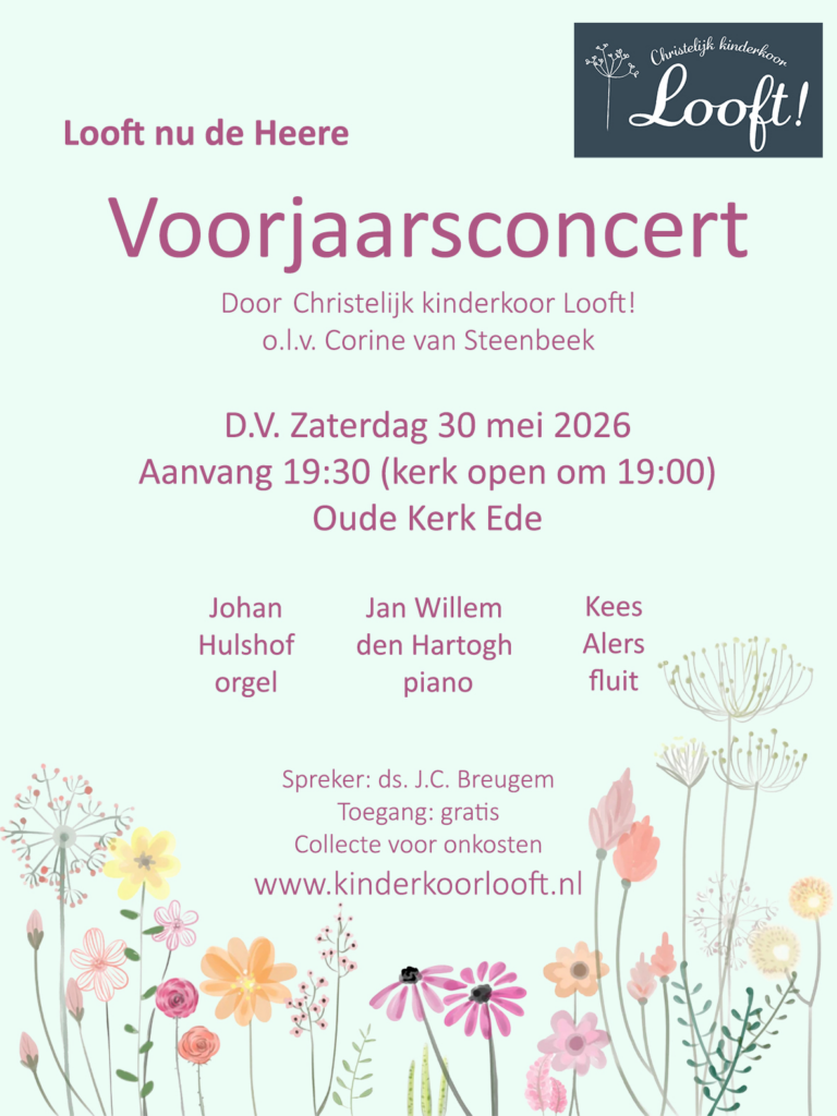 We hopen dat heel veel ouders mee willen bidden om de zegen van de Heere en een gave sfeer bij Christelijk kinderkoor Looft! tot eer van God.